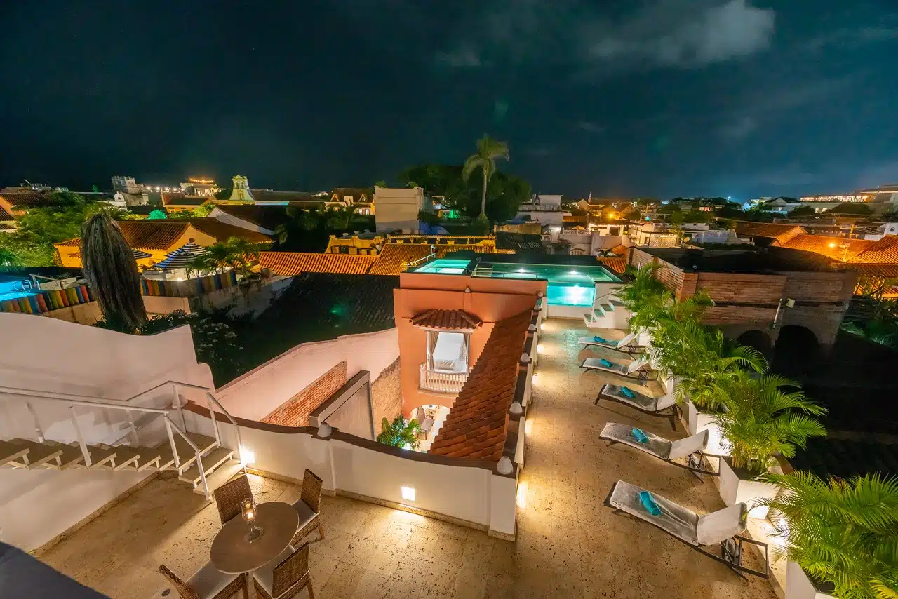 Casa Monte Carlo preserves its original language; its architecture and décor reflect the magical and historical essence of the old city. The ample corridors, surrounded by the coolness of water fountains, tropical vegetation, and two indoor patios, will take the guest to a picture-perfect place for relaxation and tranquility. The hotel interior reflects harmony created by the perfect choice of furniture which intermingles with the materials of the floors, the white walls, the lightening, the woodwork, the nature, and the vestiges of colonial walls to form an atmosphere of enchantment. On the third floor, an ample and sober terrace will offer the guest the view of the classic Cartagenean scenery: the old city walls, the ocean on the horizon, and the colorful sunset. This house features 2 outdoor pools, a full-service spa, and a restaurant. Free cooked-to-order breakfast… Additionally, a poolside bar, a snack bar/deli, and a rooftop terrace are onsite.
